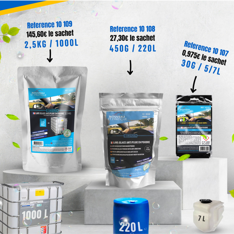 J'utilise le lave glace en poudre de cette entreprise depuis quelques mois maintenant et j'en suis très satisfait. Le fait qu'il soit hyper-concentré permet de réduire considérablement le volume de produit à stocker, ce qui est un avantage en termes de place et de coûts. De plus, la qualité de nettoyage est au rendez-vous, même avec des tâches difficiles comme les résidus de moustiques ou de pollen. Je n'ai plus besoin d'un hayon pour me livrer. Je recommande ce produit à tous les professionnels de l'automobile souhaitant gagner en efficacité et en économie.